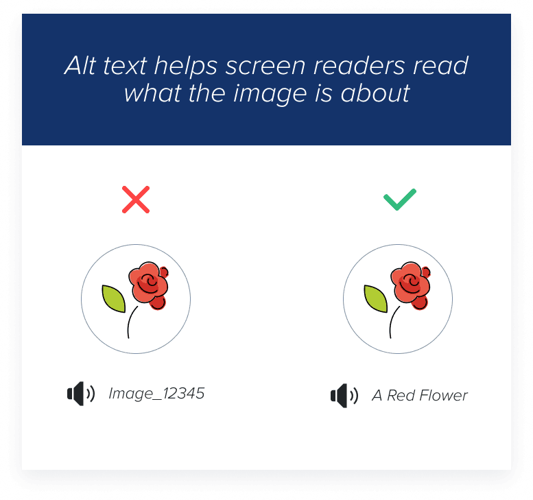 - Provide Text Alternative: For those using screen readers, images need alternative text (alt text) that describes what the image is about. Avoid generic descriptions like “picture.” Instead, describe what’s happening in the image.